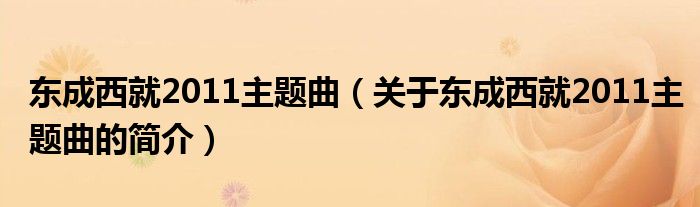 本文關(guān)于東成西就2011主題曲的簡(jiǎn)介就講解完畢,希望對(duì)大家有所幫助。