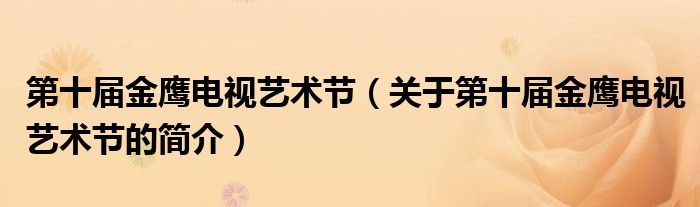 大家好,第十屆金鷹電視藝術節,關于第十屆金鷹電視藝術節的簡介很多人還不知道,現在讓我們一起來看看吧!