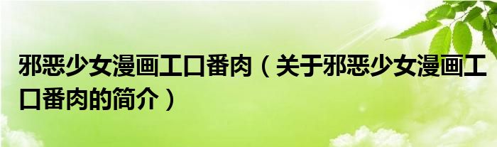 本文關于邪惡少女漫畫工口番肉的簡介就講解完畢,希望對大家有所幫助。