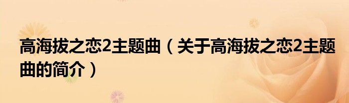 本文關(guān)于高海拔之戀2主題曲的簡介就講解完畢,希望對大家有所幫助。