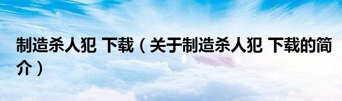 本文關于制造殺人犯 下載的簡介就講解完畢,希望對大家有所幫助。