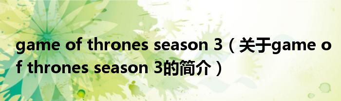 本文關(guān)于game of thrones season 3的簡(jiǎn)介就講解完畢,希望對(duì)大家有所幫助。