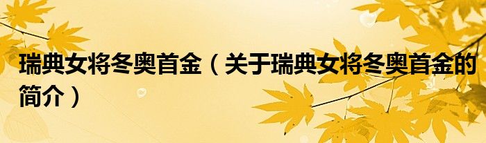 本文關于瑞典女將冬奧首金的簡介就講解完畢,希望對大家有所幫助。