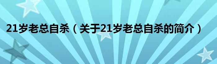 本文關(guān)于21歲老總自殺的簡(jiǎn)介就講解完畢,希望對(duì)大家有所幫助。