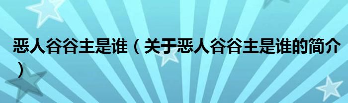 本文關于惡人谷谷主是誰的簡介就講解完畢,希望對大家有所幫助。