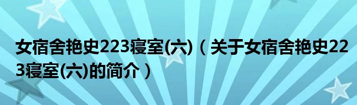 本文關(guān)于女宿舍艷史223寢室(六)的簡介就講解完畢,希望對大家有所幫助。