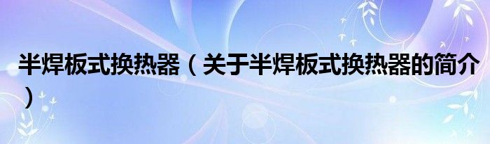 大家好,半焊板式換熱器,關(guān)于半焊板式換熱器的簡介很多人還不知道,現(xiàn)在讓我們一起來看看吧!