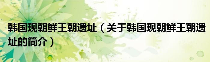 本文關于韓國現朝鮮王朝遺址的簡介就講解完畢,希望對大家有所幫助。