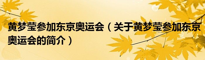 本文關于黃夢瑩參加東京奧運會的簡介就講解完畢,希望對大家有所幫助。