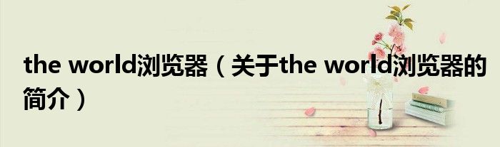 大家好,the world瀏覽器,關于the world瀏覽器的簡介很多人還不知道,現在讓我們一起來看看吧!