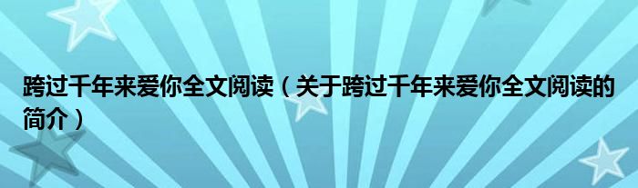 本文關(guān)于跨過(guò)千年來(lái)愛(ài)你全文閱讀的簡(jiǎn)介就講解完畢,希望對(duì)大家有所幫助。
