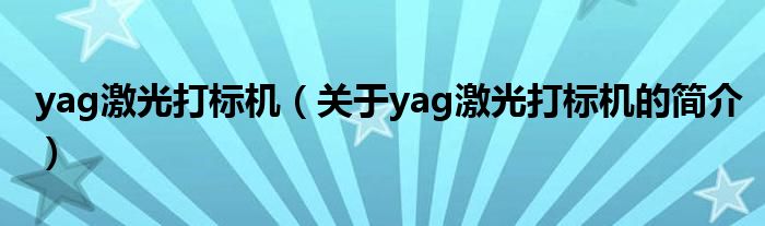 本文關于yag激光打標機的簡介就講解完畢,希望對大家有所幫助。
