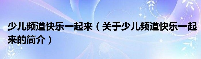 大家好,少兒頻道快樂一起來,關于少兒頻道快樂一起來的簡介很多人還不知道,現在讓我們一起來看看吧!