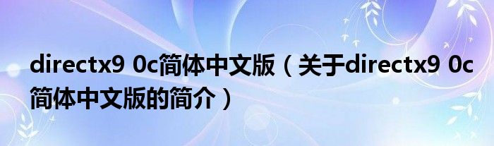 大家好,directx9 0c簡體中文版,關于directx9 0c簡體中文版的簡介很多人還不知道,現在讓我們一起來看看吧!