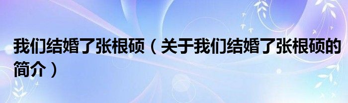 大家好,我們結婚了張根碩,關于我們結婚了張根碩的簡介很多人還不知道,現在讓我們一起來看看吧!