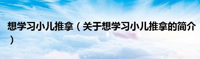 本文關于想學習小兒推拿的簡介就講解完畢,希望對大家有所幫助。