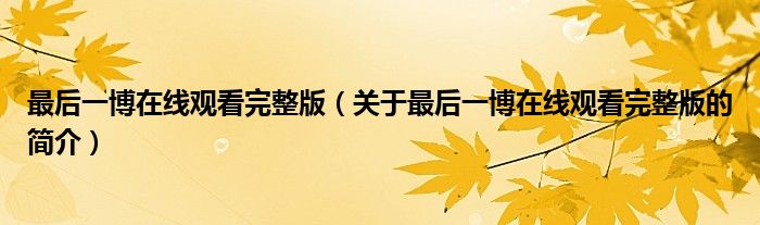 本文關(guān)于最后一博在線觀看完整版的簡(jiǎn)介就講解完畢,希望對(duì)大家有所幫助。