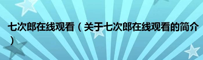 本文關(guān)于七次郎在線觀看的簡介就講解完畢,希望對大家有所幫助。