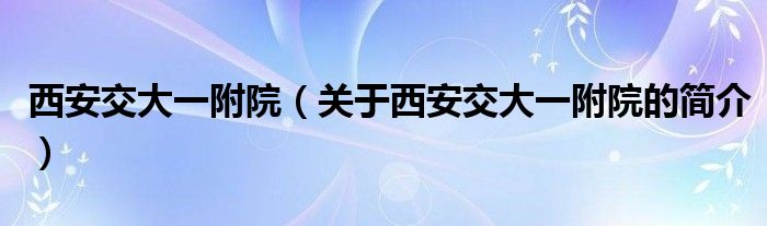 大家好,西安交大一附院,關(guān)于西安交大一附院的簡介很多人還不知道,現(xiàn)在讓我們一起來看看吧!
