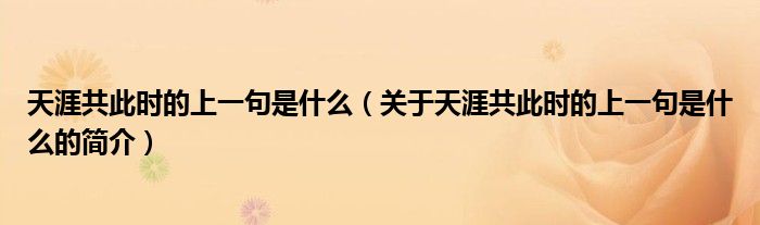 本文關于天涯共此時的上一句是什么的簡介就講解完畢,希望對大家有所幫助。