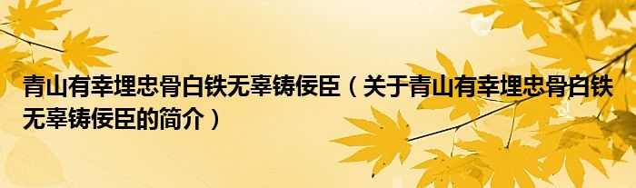 本文關于青山有幸埋忠骨白鐵無辜鑄佞臣的簡介就講解完畢,希望對大家有所幫助。