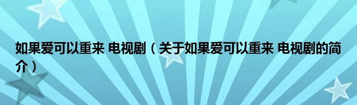 本文關于如果愛可以重來 電視劇的簡介就講解完畢,希望對大家有所幫助。