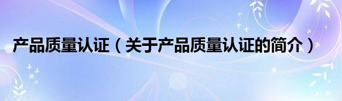 本文關于產品質量認證的簡介就講解完畢,希望對大家有所幫助。