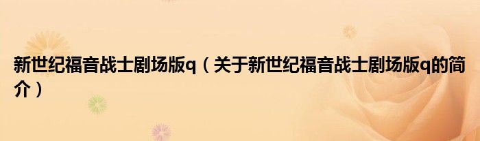 本文關于新世紀福音戰士劇場版q的簡介就講解完畢,希望對大家有所幫助。