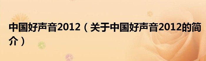 本文關(guān)于中國好聲音2012的簡介就講解完畢,希望對大家有所幫助。