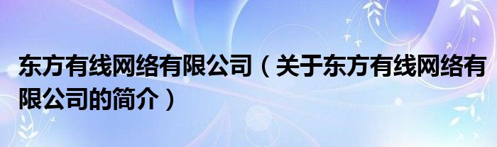 大家好,東方有線網絡有限公司,關于東方有線網絡有限公司的簡介很多人還不知道,現在讓我們一起來看看吧!
