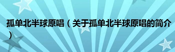 本文關于孤單北半球原唱的簡介就講解完畢,希望對大家有所幫助。