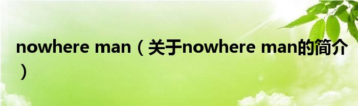 大家好,nowhere man,關于nowhere man的簡介很多人還不知道,現在讓我們一起來看看吧!