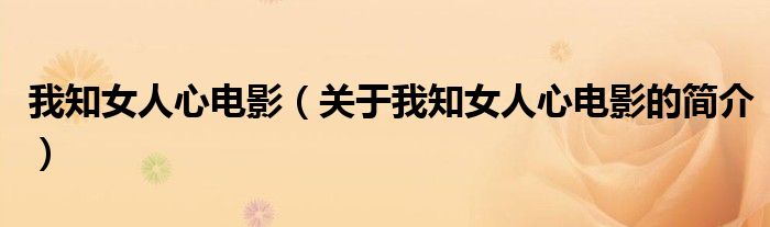 大家好,我知女人心電影,關于我知女人心電影的簡介很多人還不知道,現在讓我們一起來看看吧!