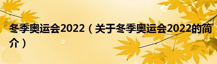 本文關(guān)于冬季奧運(yùn)會(huì)2022的簡(jiǎn)介就講解完畢,希望對(duì)大家有所幫助。