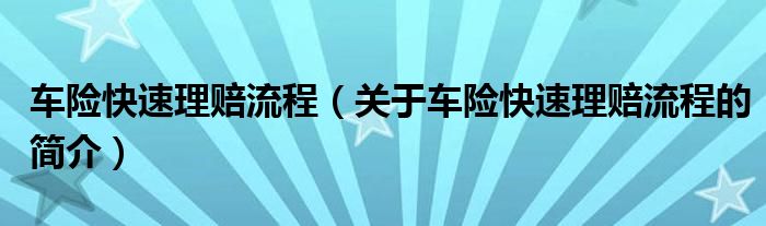 本文關(guān)于車險(xiǎn)快速理賠流程的簡(jiǎn)介就講解完畢,希望對(duì)大家有所幫助。