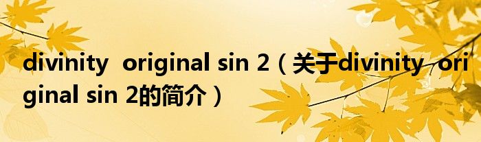 本文關于divinity original sin 2的簡介就講解完畢,希望對大家有所幫助。