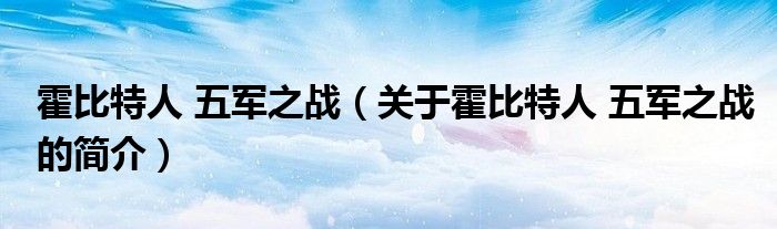 本文關于霍比特人 五軍之戰的簡介就講解完畢,希望對大家有所幫助。