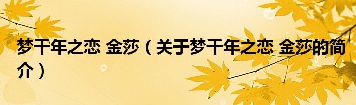 本文關(guān)于夢(mèng)千年之戀 金莎的簡(jiǎn)介就講解完畢,希望對(duì)大家有所幫助。