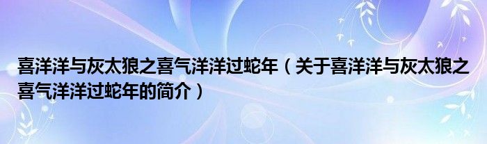 本文關(guān)于喜洋洋與灰太狼之喜氣洋洋過(guò)蛇年的簡(jiǎn)介就講解完畢,希望對(duì)大家有所幫助。