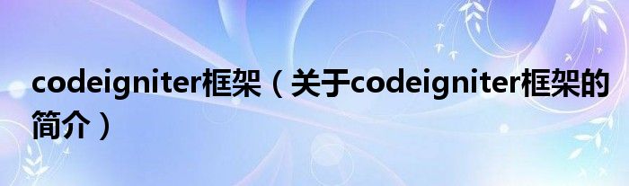 大家好,codeigniter框架,關于codeigniter框架的簡介很多人還不知道,現在讓我們一起來看看吧!