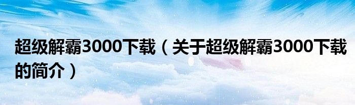 本文關于超級解霸3000下載的簡介就講解完畢,希望對大家有所幫助。