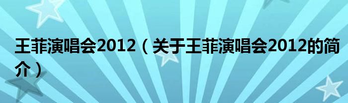 本文關于王菲演唱會2012的簡介就講解完畢,希望對大家有所幫助。