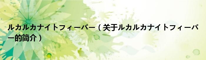 本文關于ルカルカナイトフィーバー的簡介就講解完畢,希望對大家有所幫助。