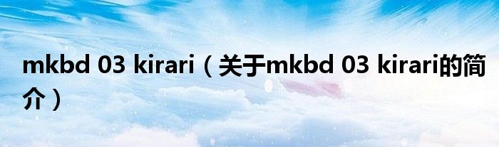 大家好,mkbd 03 kirari,關(guān)于mkbd 03 kirari的簡介很多人還不知道,現(xiàn)在讓我們一起來看看吧!