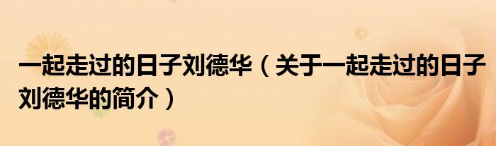 本文關(guān)于一起走過的日子劉德華的簡介就講解完畢,希望對大家有所幫助。
