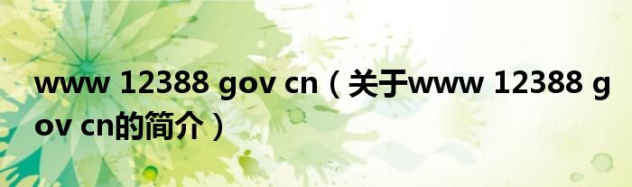 本文關于www 12388 gov cn的簡介就講解完畢,希望對大家有所幫助。