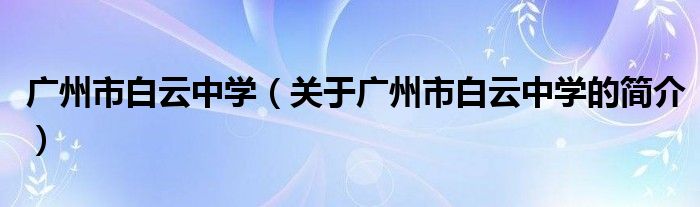 本文關于廣州市白云中學的簡介就講解完畢,希望對大家有所幫助。