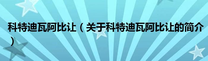 大家好,科特迪瓦阿比讓,關于科特迪瓦阿比讓的簡介很多人還不知道,現在讓我們一起來看看吧!