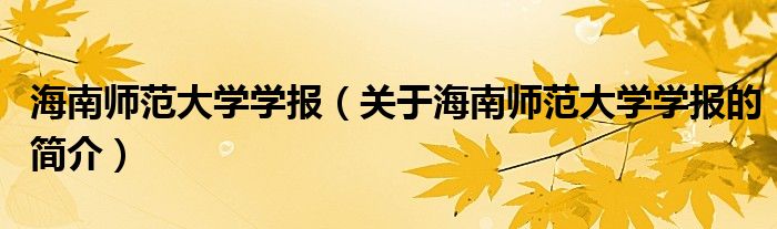 本文關于海南師范大學學報的簡介就講解完畢,希望對大家有所幫助。