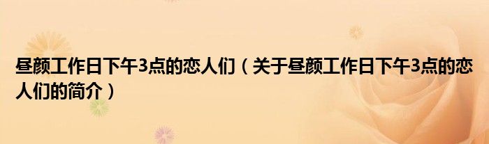大家好,晝顏工作日下午3點的戀人們,關于晝顏工作日下午3點的戀人們的簡介很多人還不知道,現在讓我們一起來看看吧!